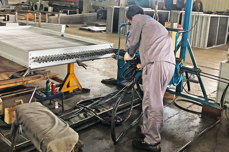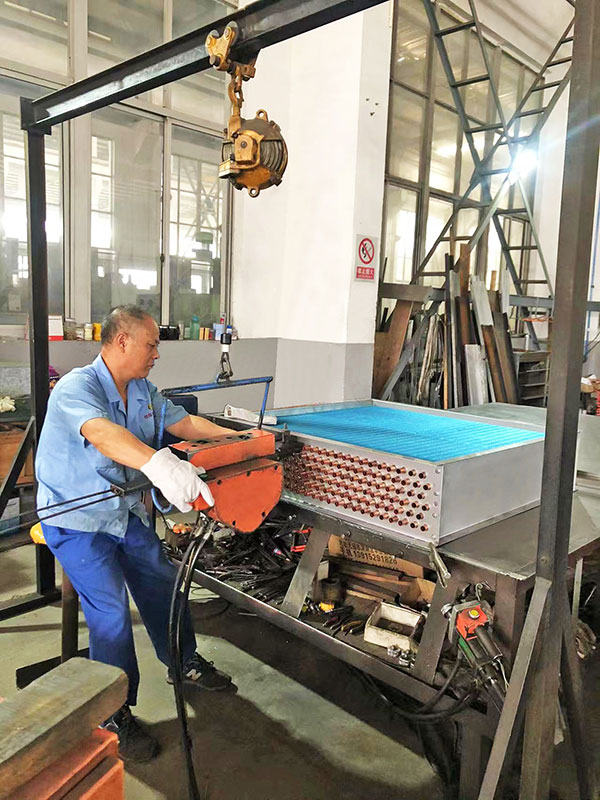 不锈钢管串铝片表冷器组装
